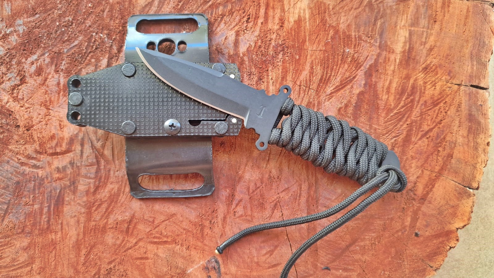 A DEF 3 B possui uma bainha de polímero para saque rápido, permitindo ela ser transportada com segurança, sua empunhadura é confecionada em paracord, permitindo ele ser usado quando necessário.
